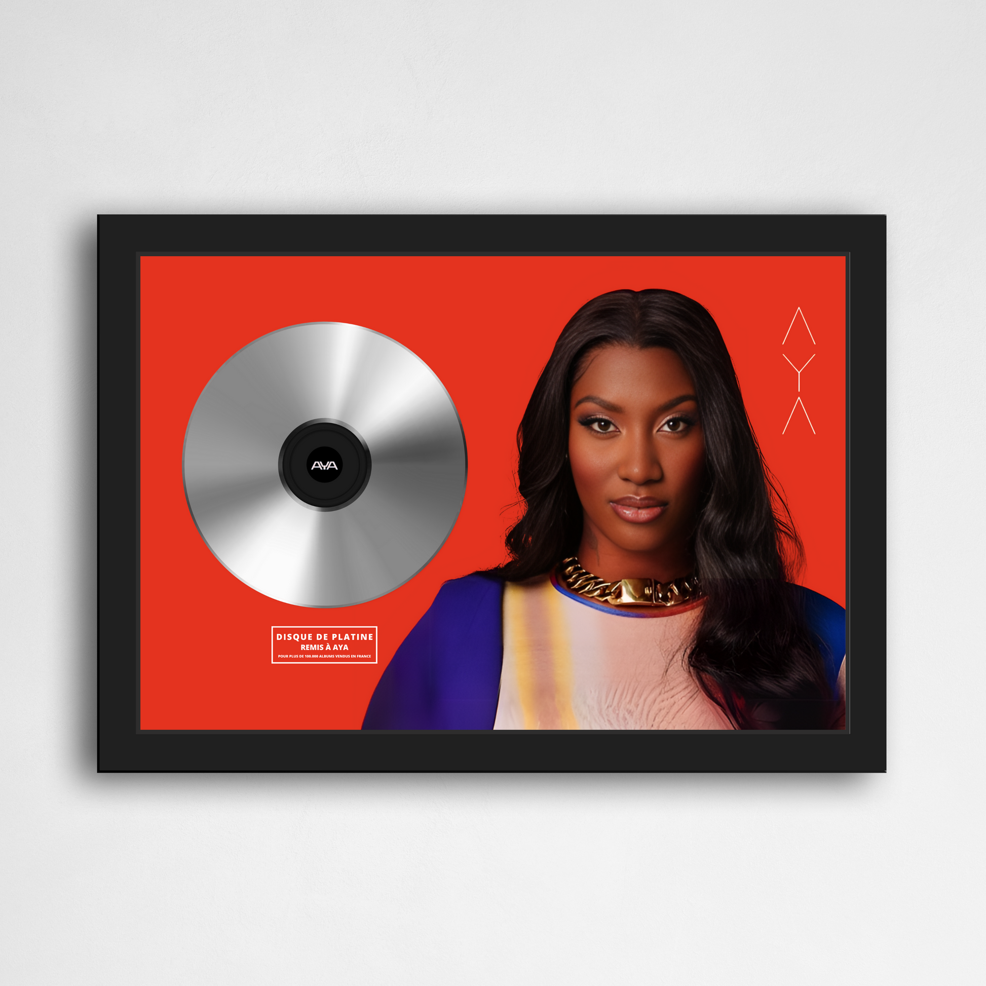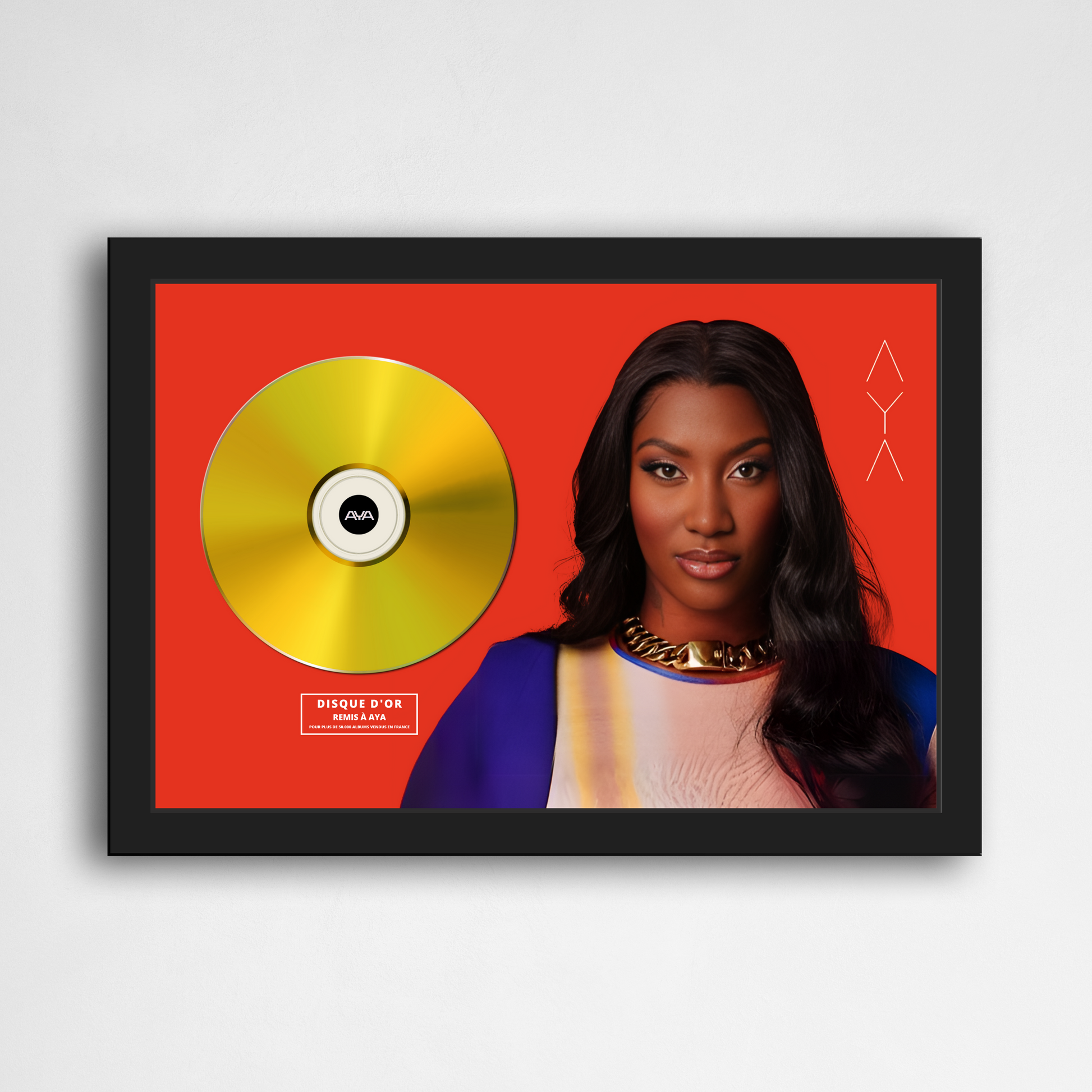 Affiche A4 incorporant un véritable CD artisanal doré ou platine. Fournie sans cadre.