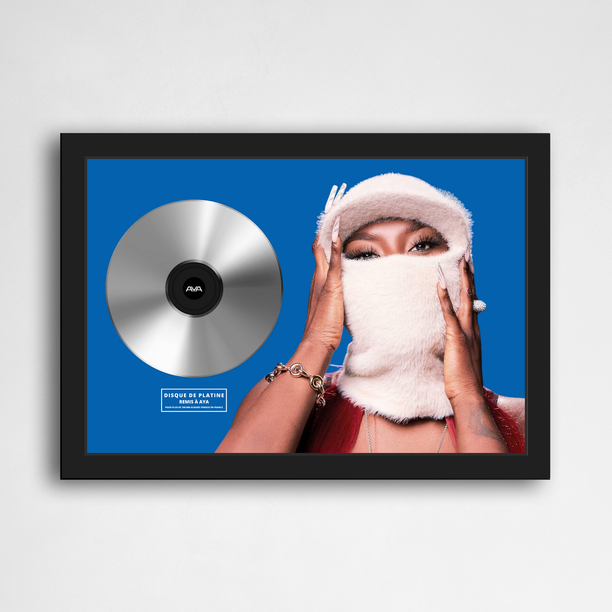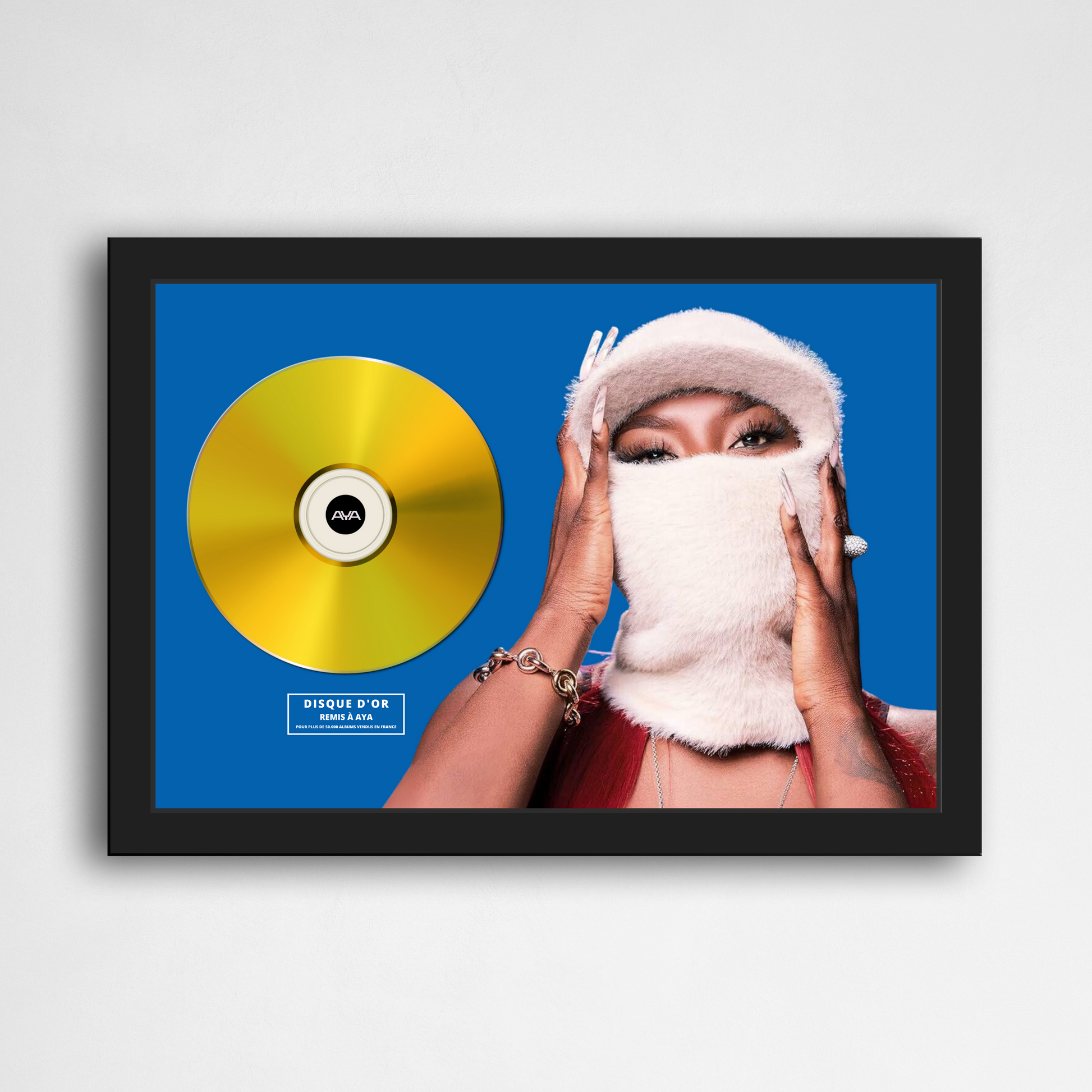Affiche A4 incorporant un véritable CD artisanal doré ou platine. Fournie sans cadre.