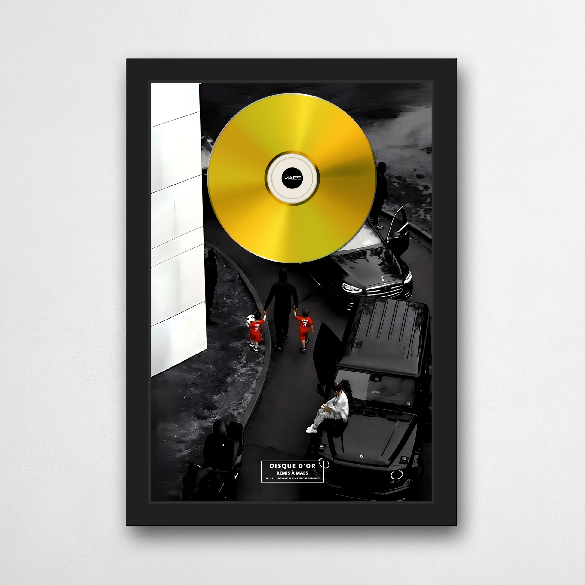 Affiche A4 incorporant un véritable CD artisanal doré ou platine. Fournie sans cadre.