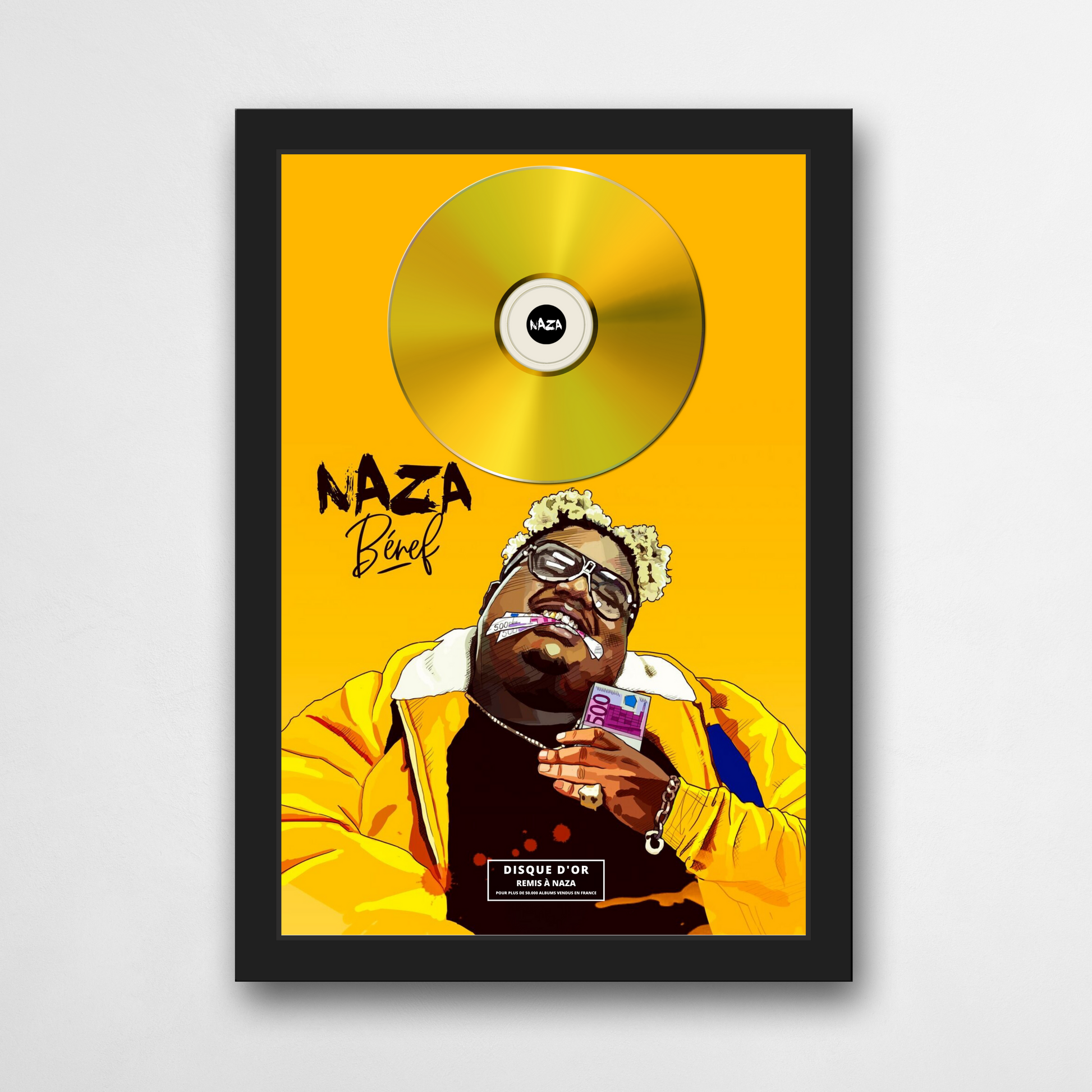 Affiche A4 incorporant un véritable CD artisanal doré ou platine. Fournie sans cadre.