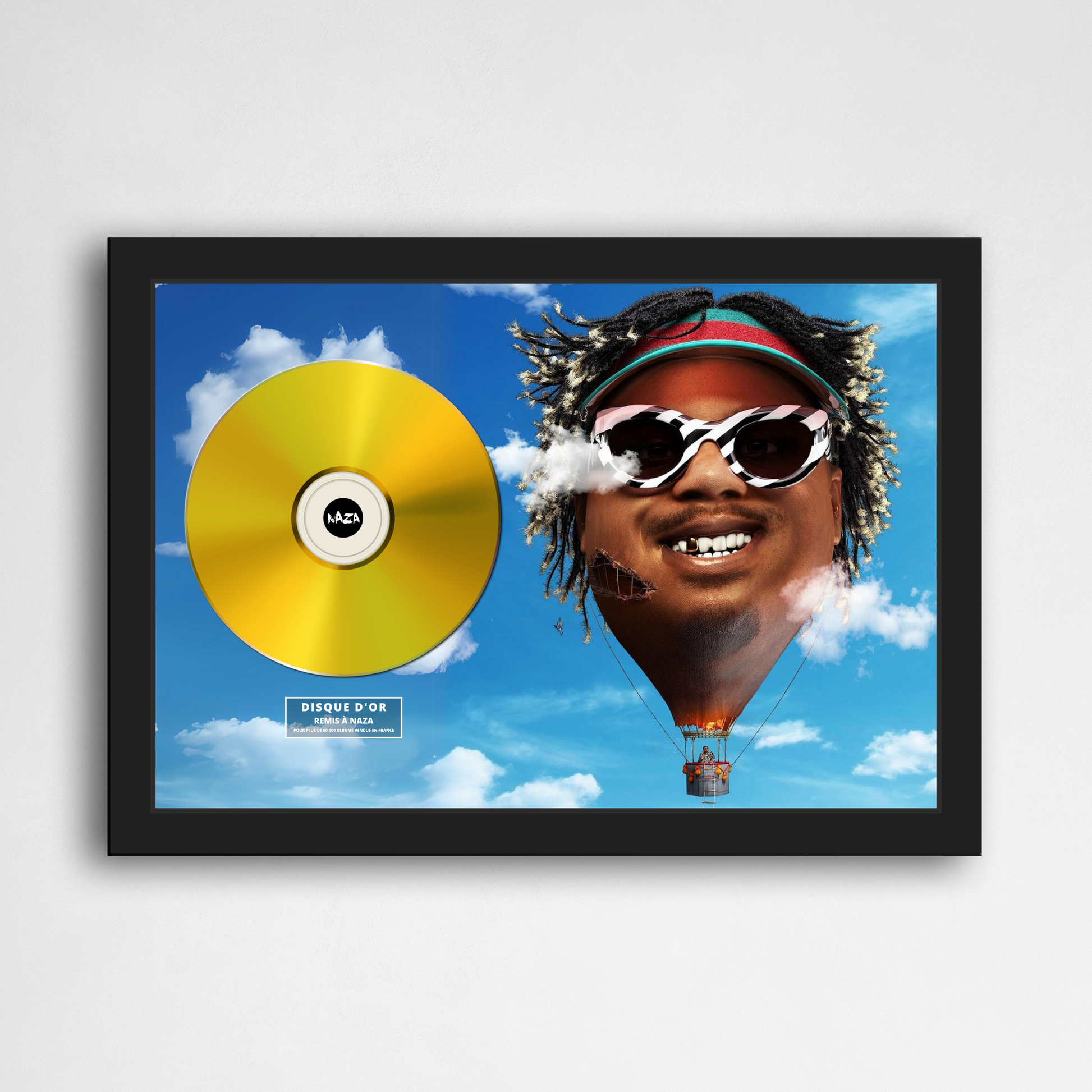 Affiche A4 incorporant un véritable CD artisanal doré ou platine. Fournie sans cadre.