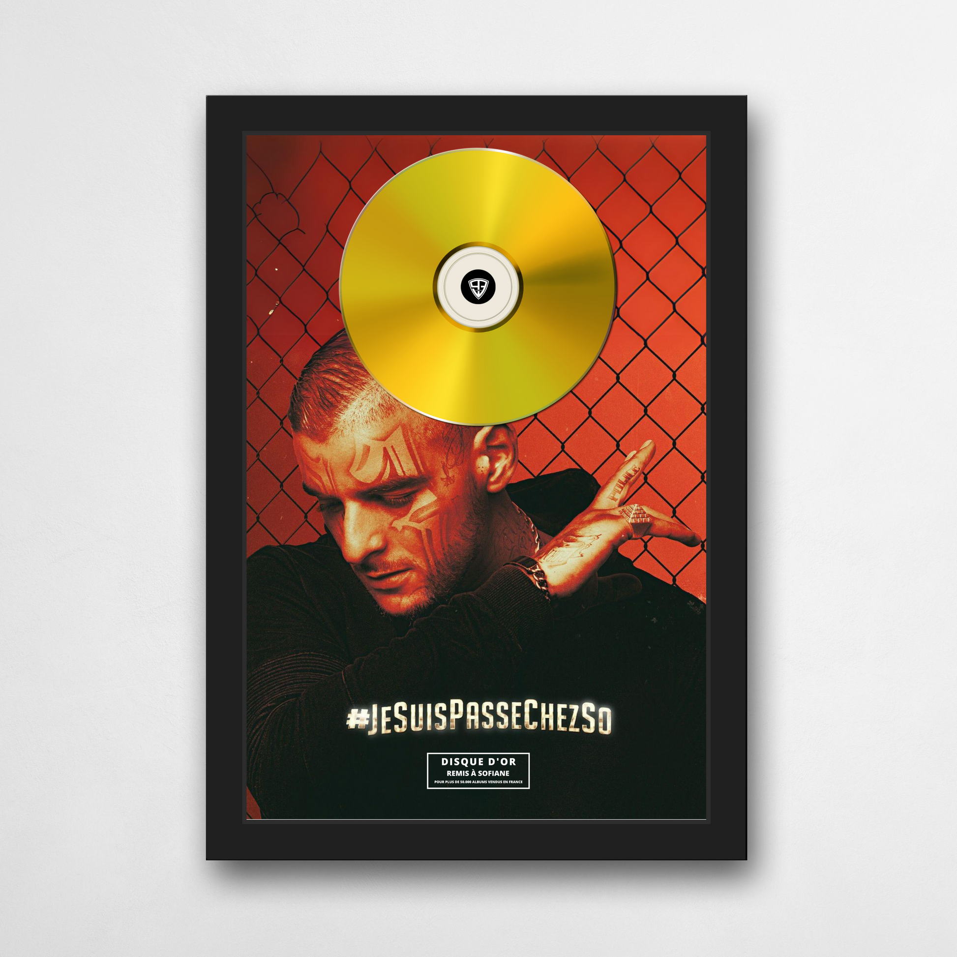 Affiche A4 incorporant un véritable CD artisanal doré ou platine. Fournie sans cadre.