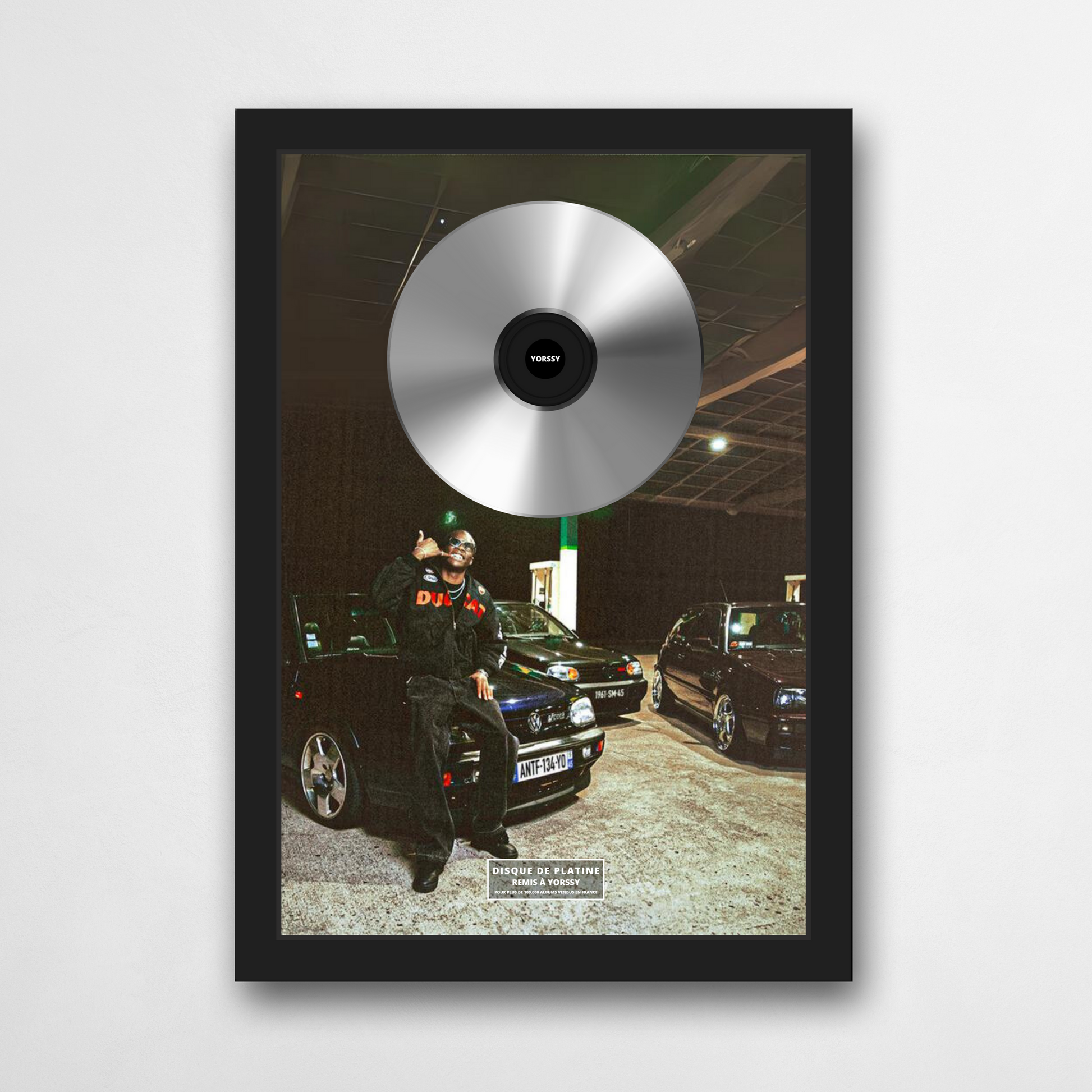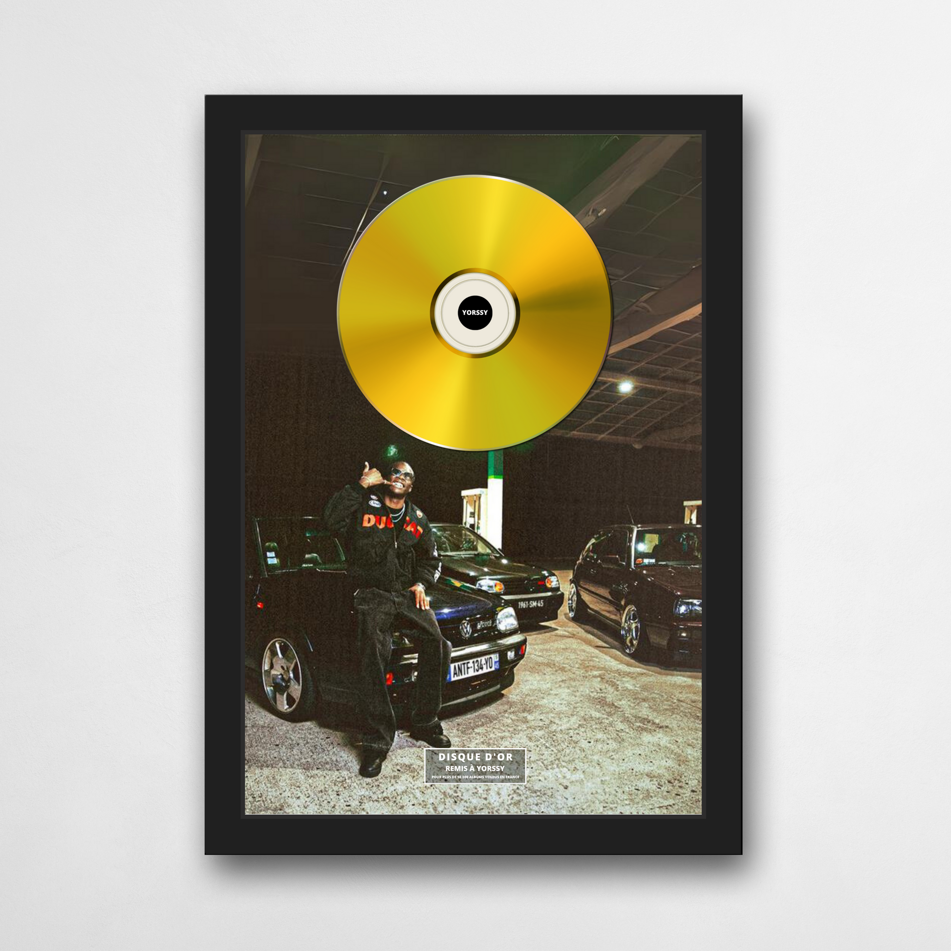 Affiche A4 incorporant un véritable CD artisanal doré ou platine. Fournie sans cadre.